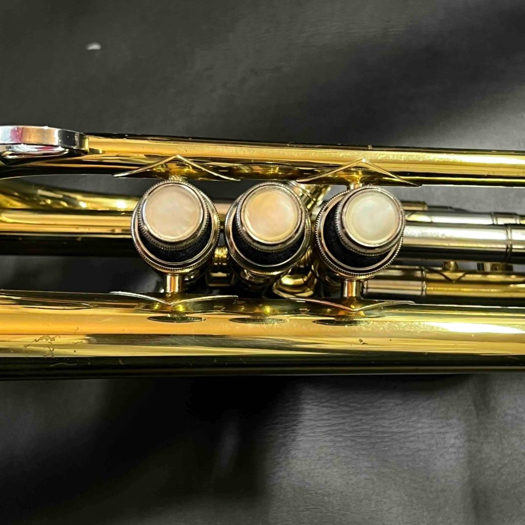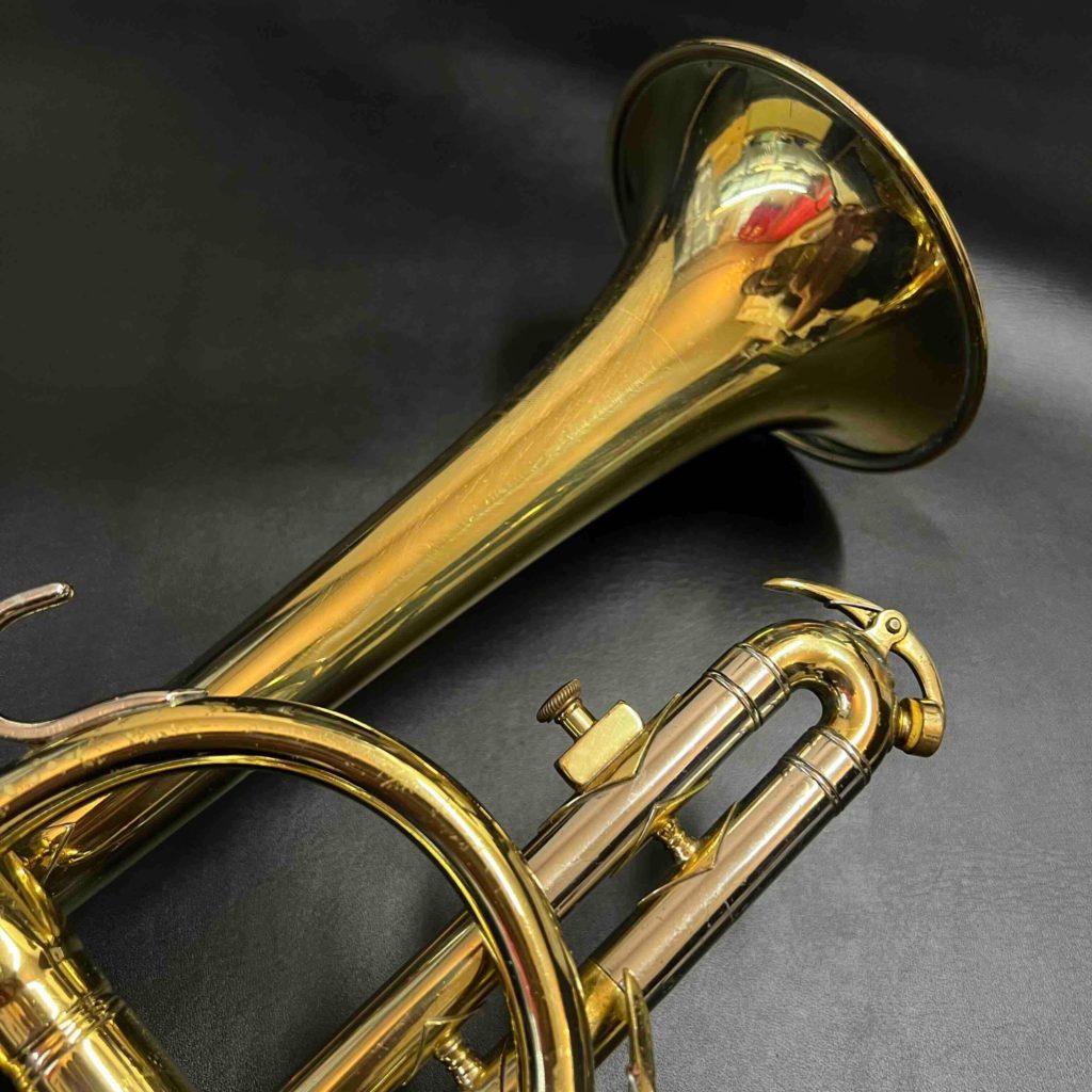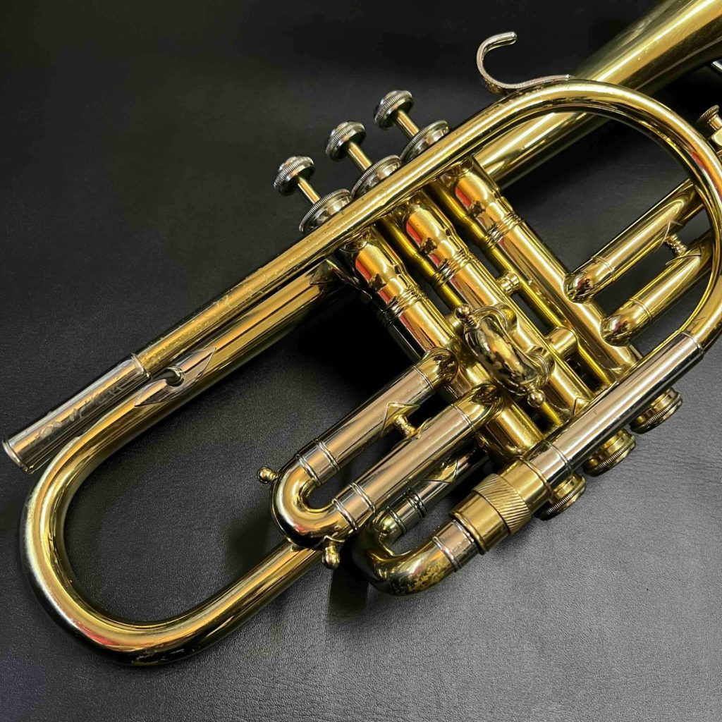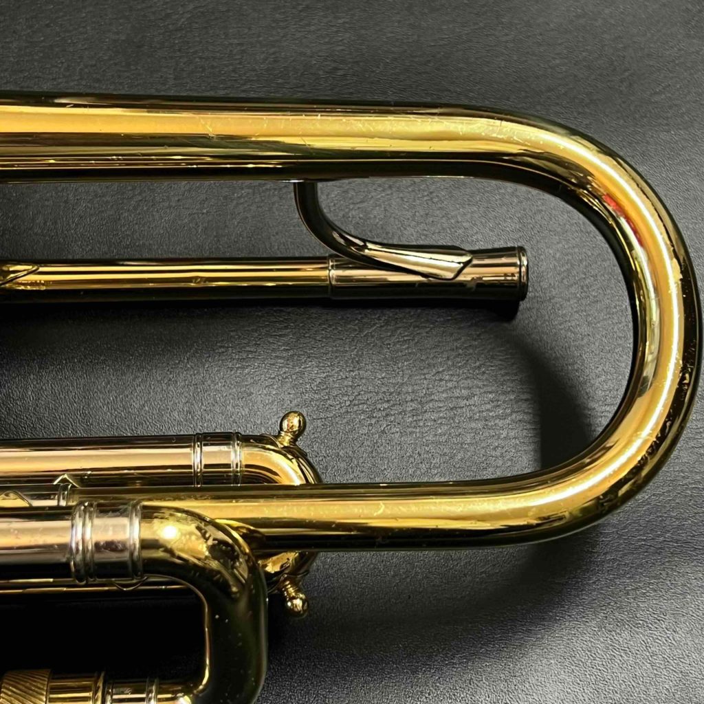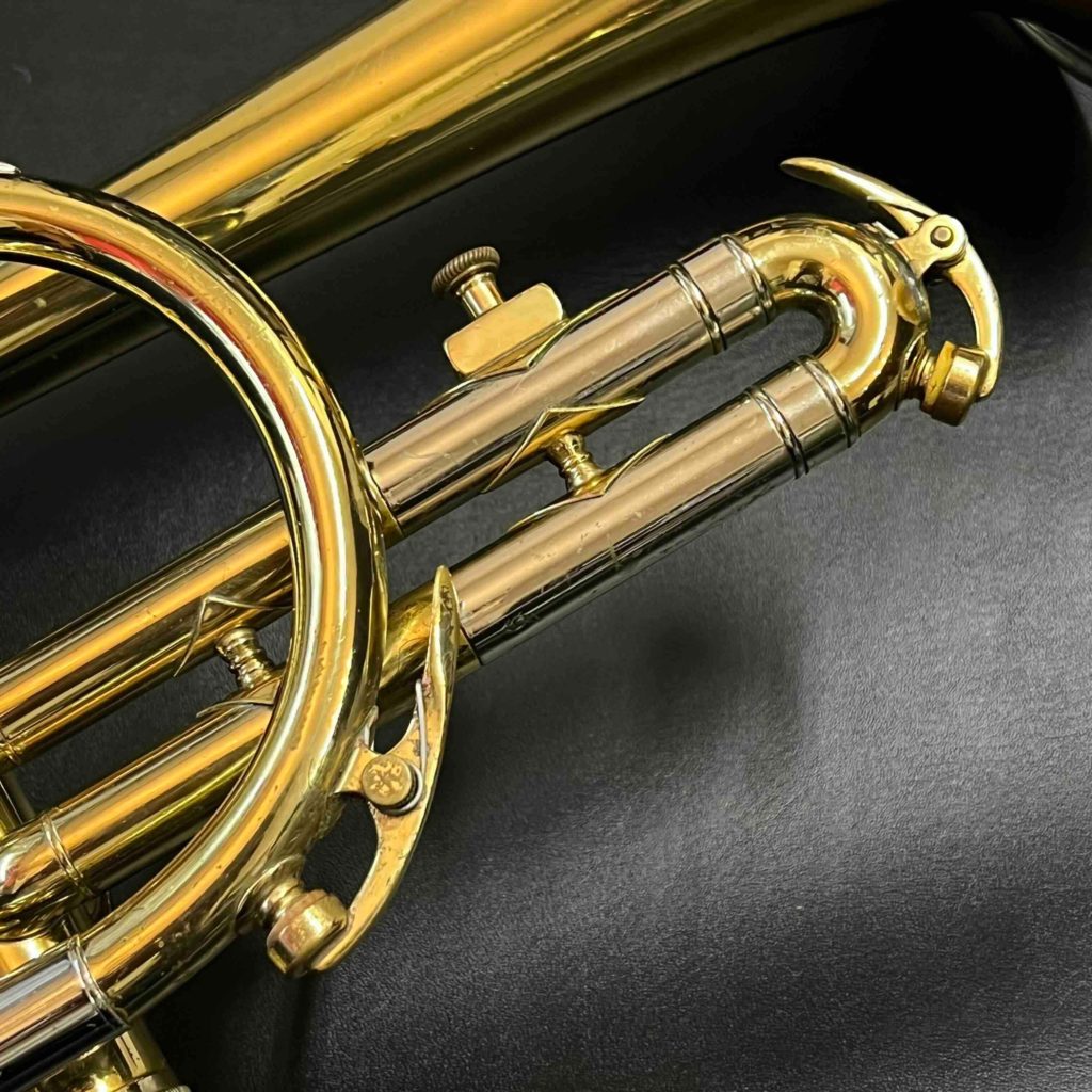 - 小さな凹みが数ヶ所あります。メインチューニングスライドから3番ピストンに入る枝管に当て金がしてあります。リラッカーですが、大きな事故も見られずまずまず良い状態です。ピストンもバッチリです。