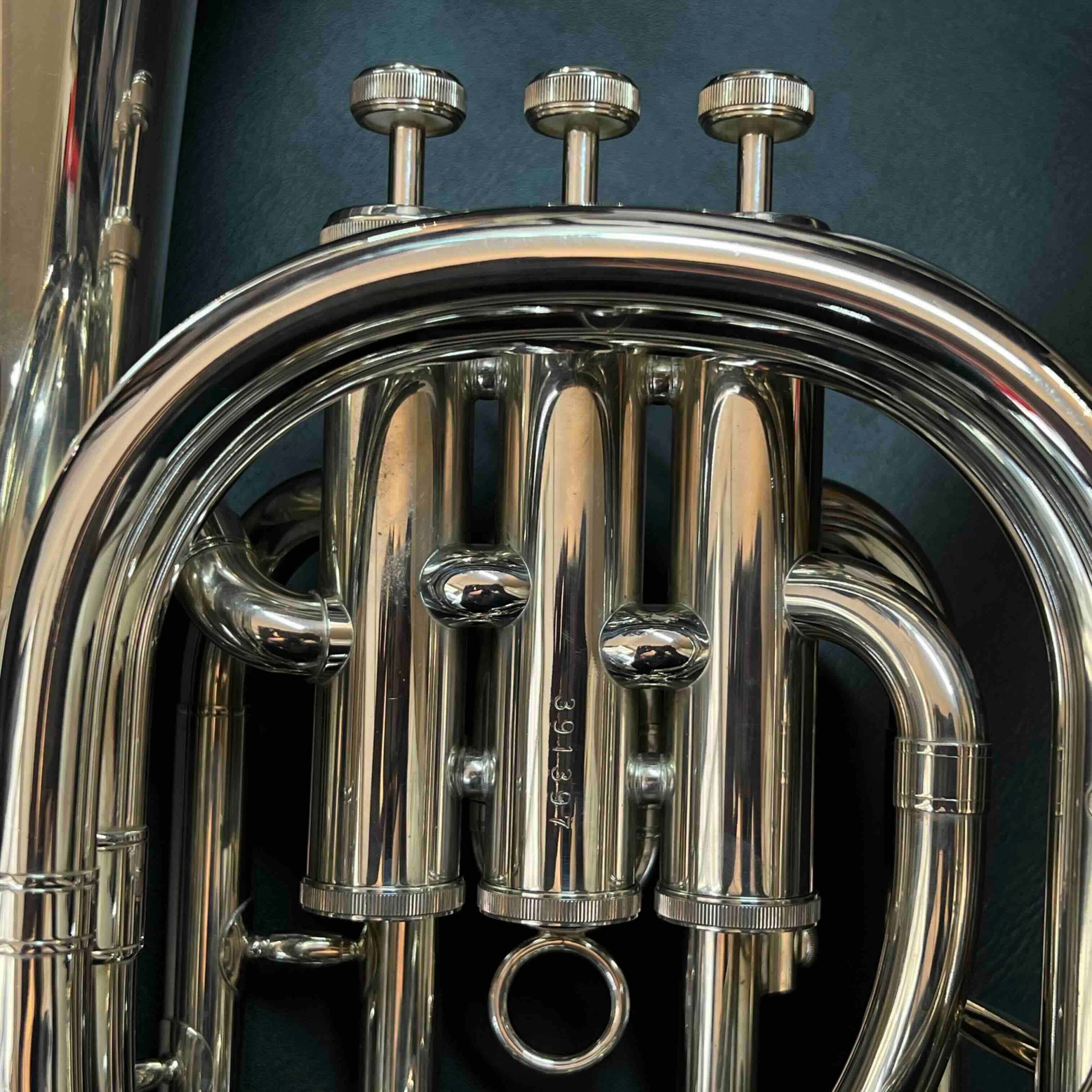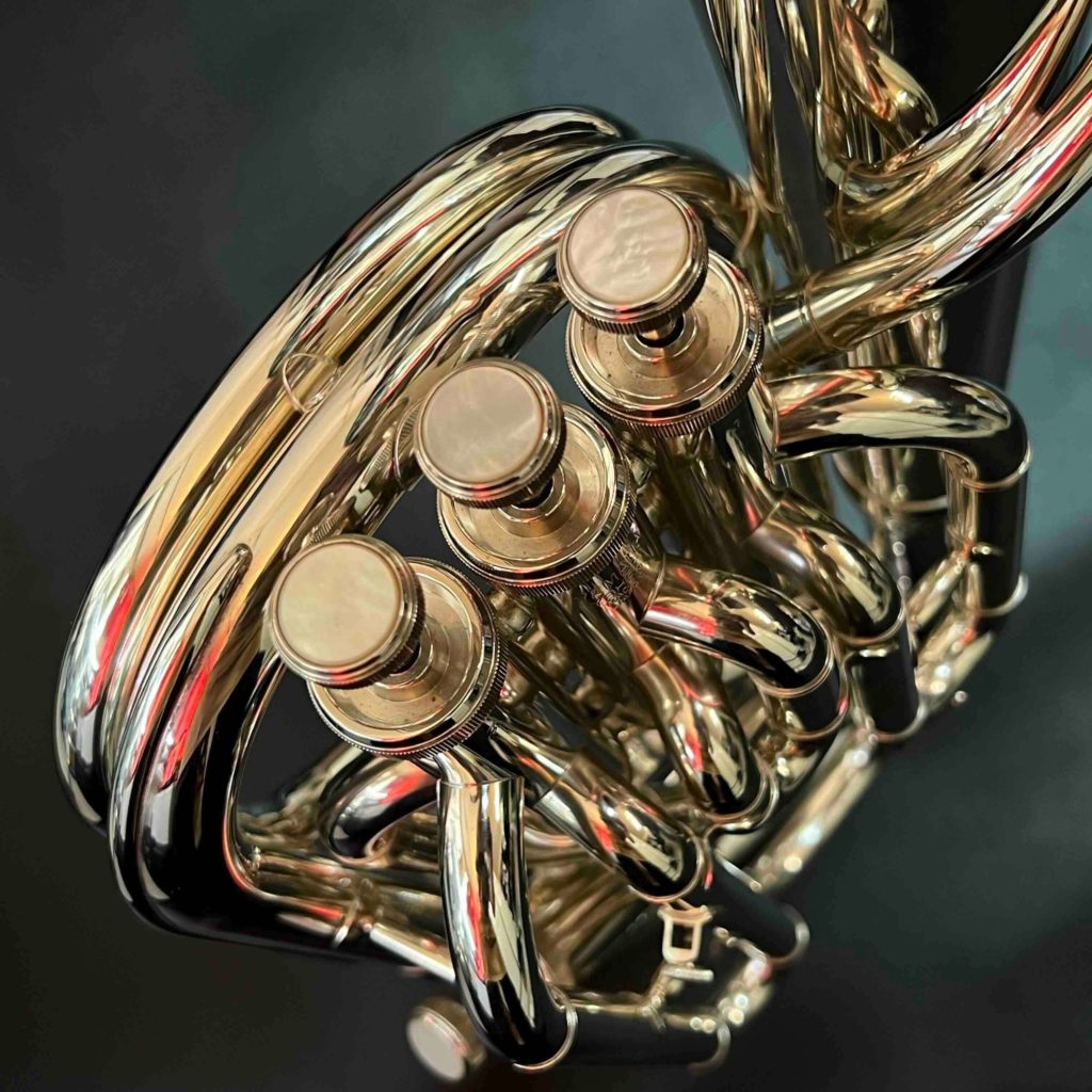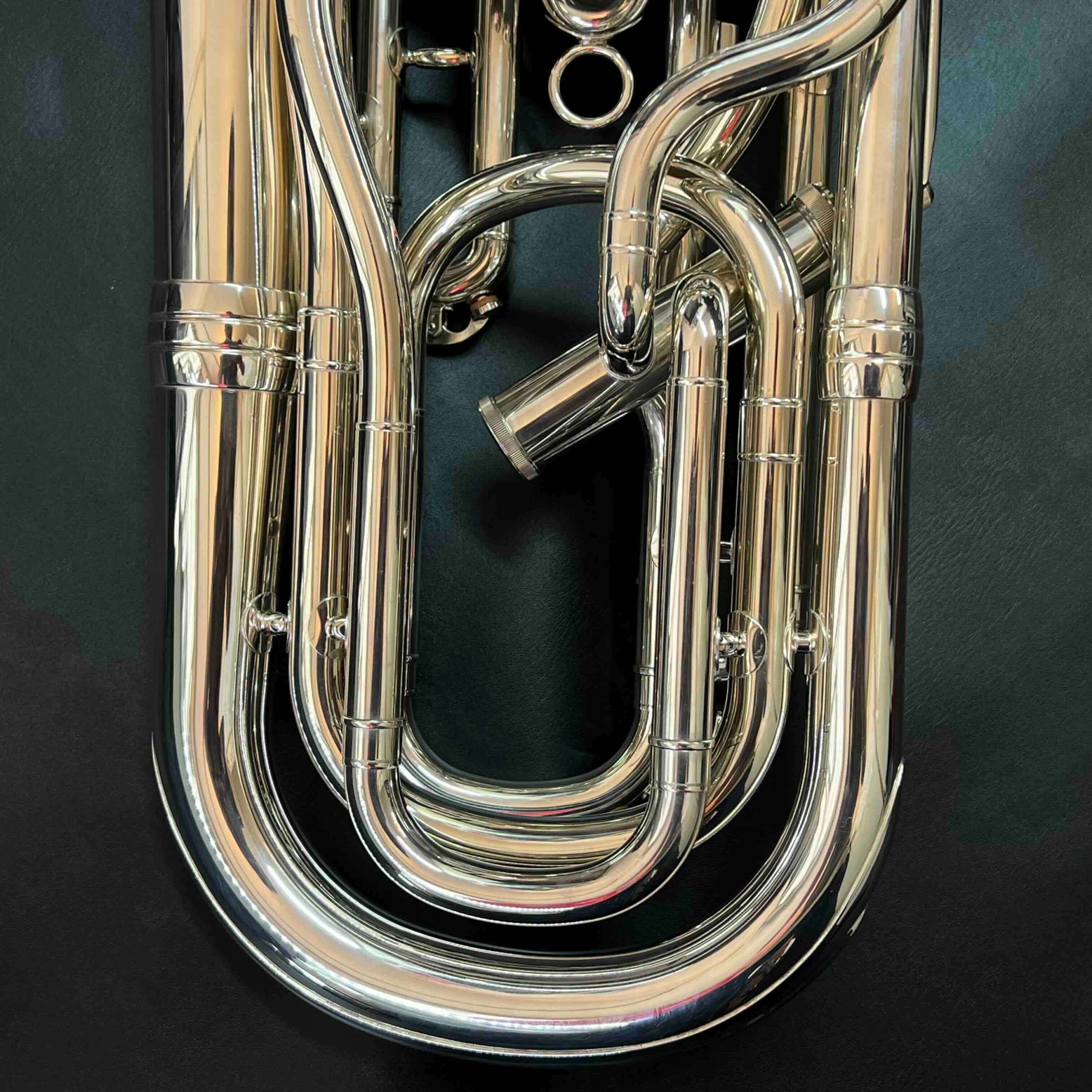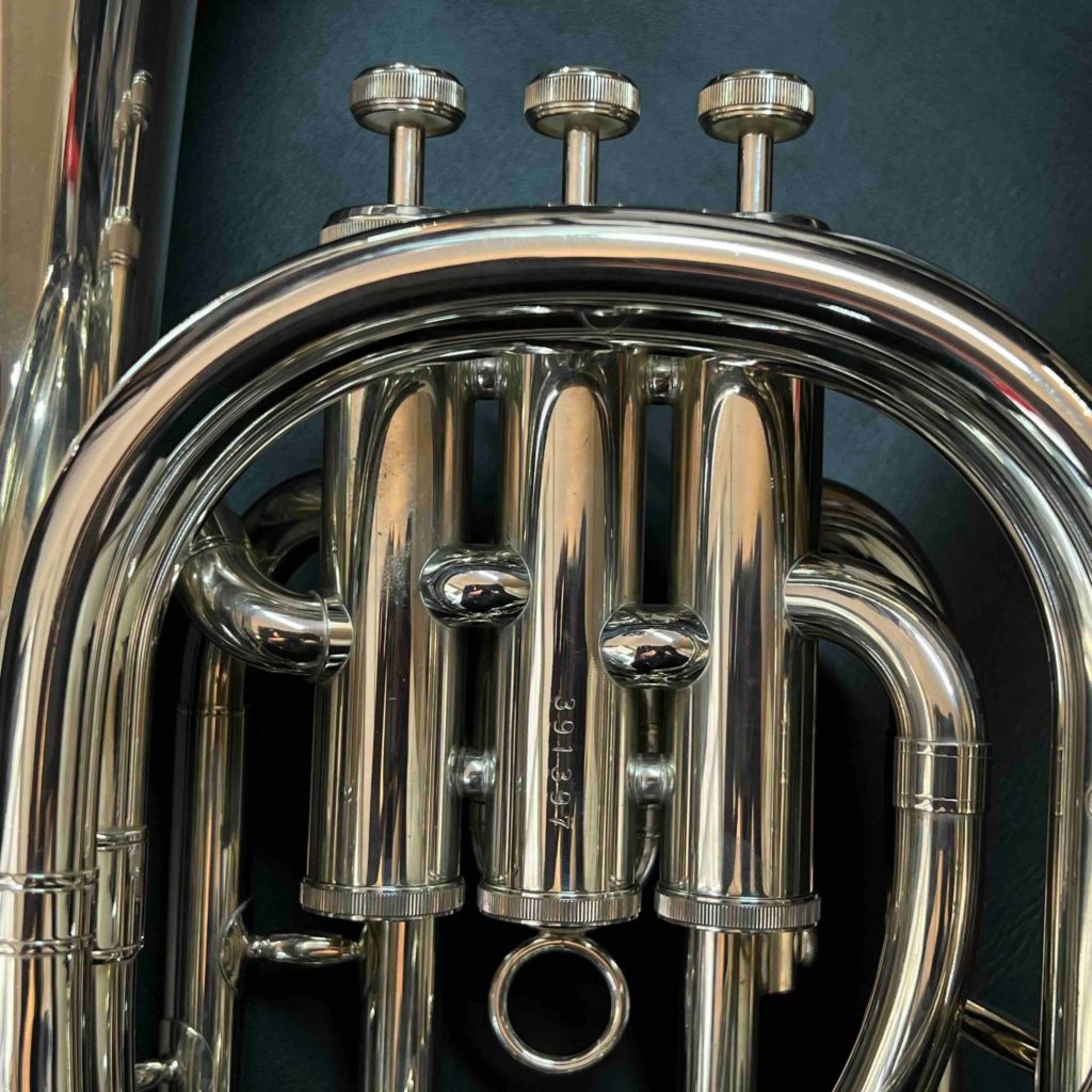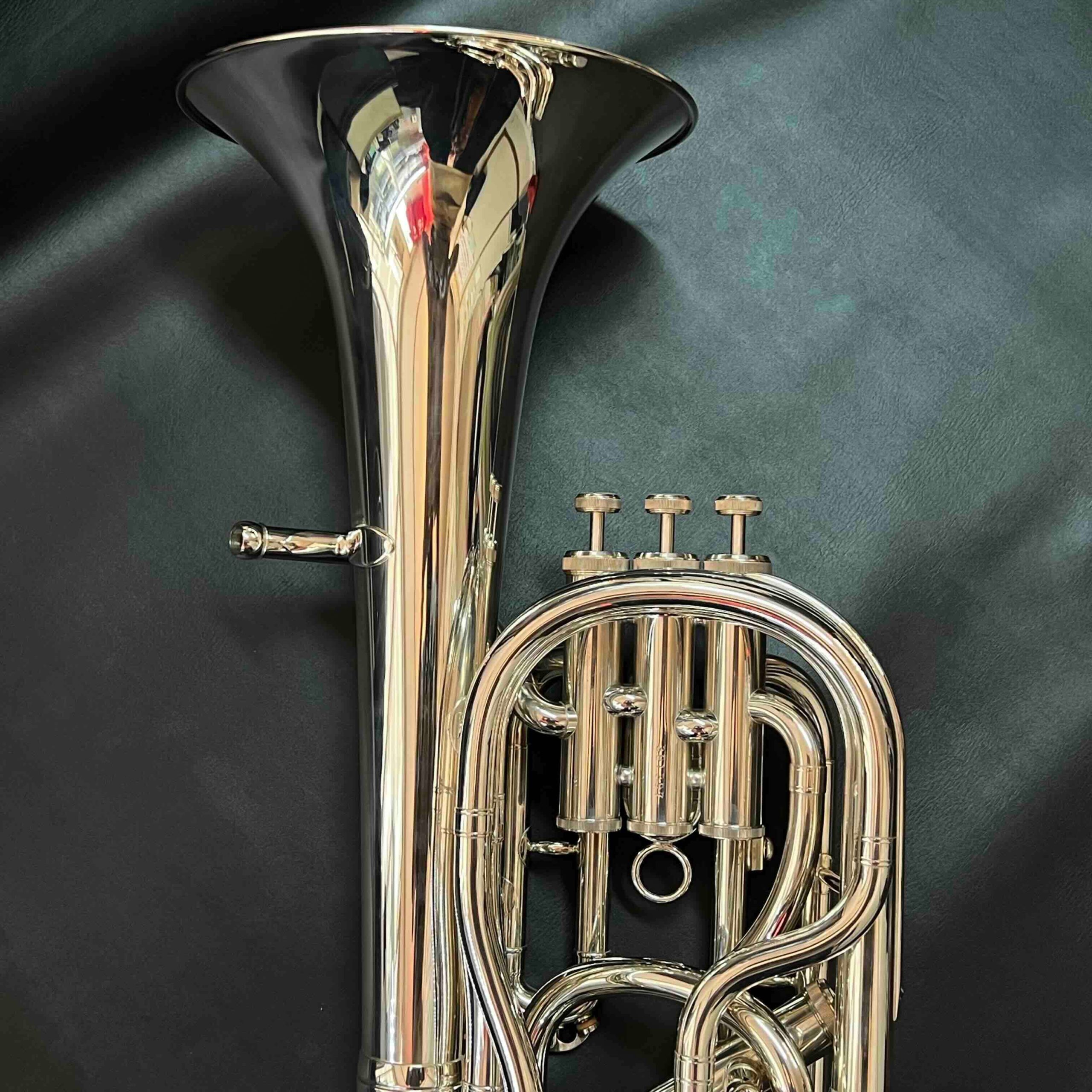 - #391***、B♭管、スモールシャンク、4ピストン、ベル:イエローブラス直径211mm、ボアサイズ:12.8mm(第1~第3)/13.5mm(第4)、銀メッキ仕上げ