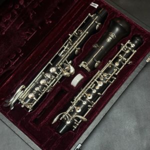 管体:銀製、キイ・ジョイント補強リング:洋銀製、カバードキイ、ピントップアーム、Eメカニズム付き、C足部管、銀メッキ仕上げ