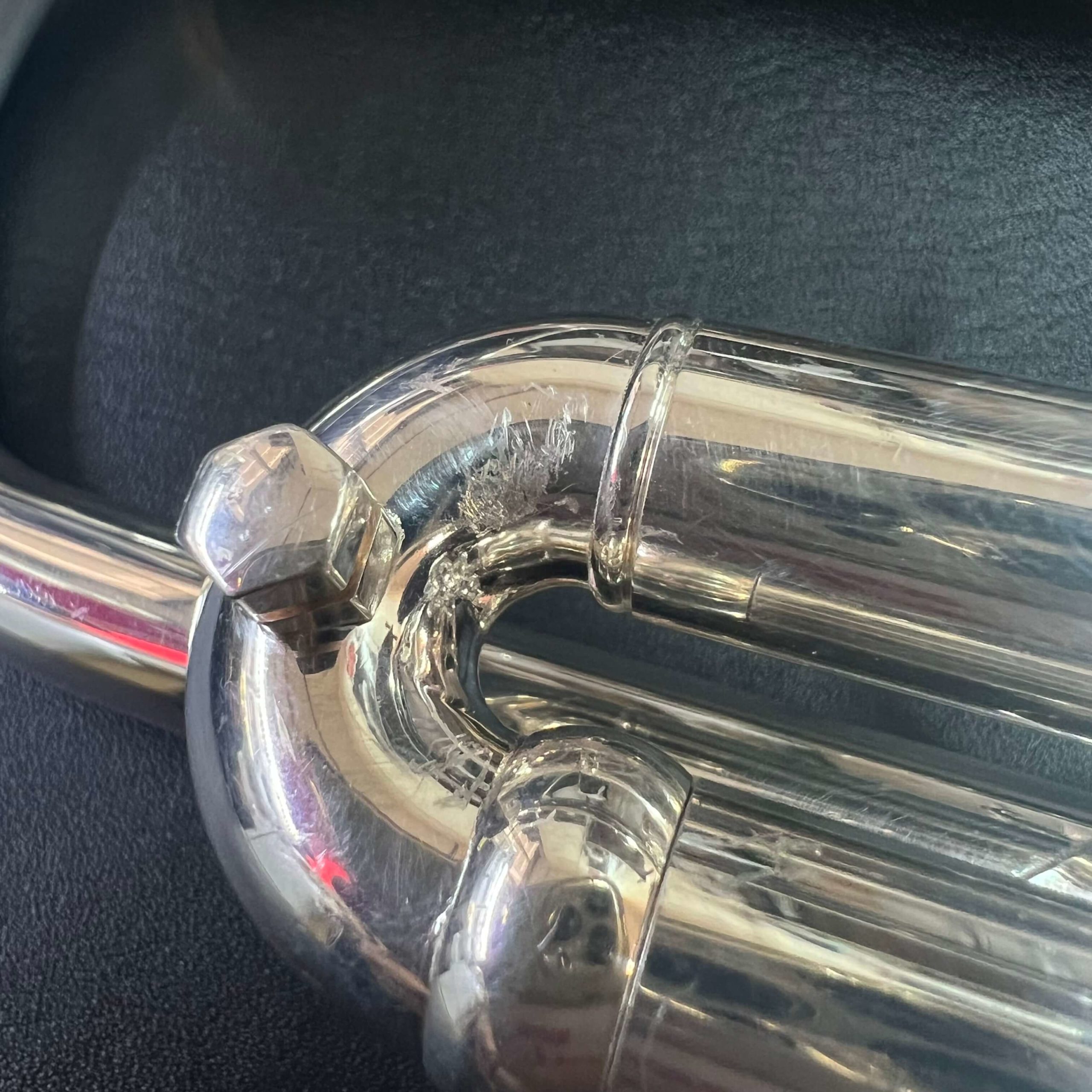 - 全体に細かな傷があります。ベルと1番管に小さな凹みの修理痕があります。大きな事故やメッキ剥がれもなく問題なく使用できます。管内清掃済み。